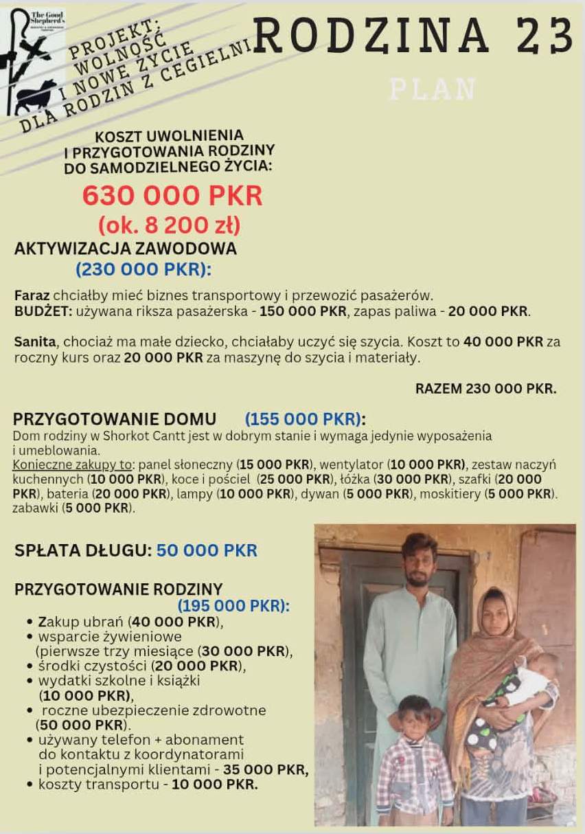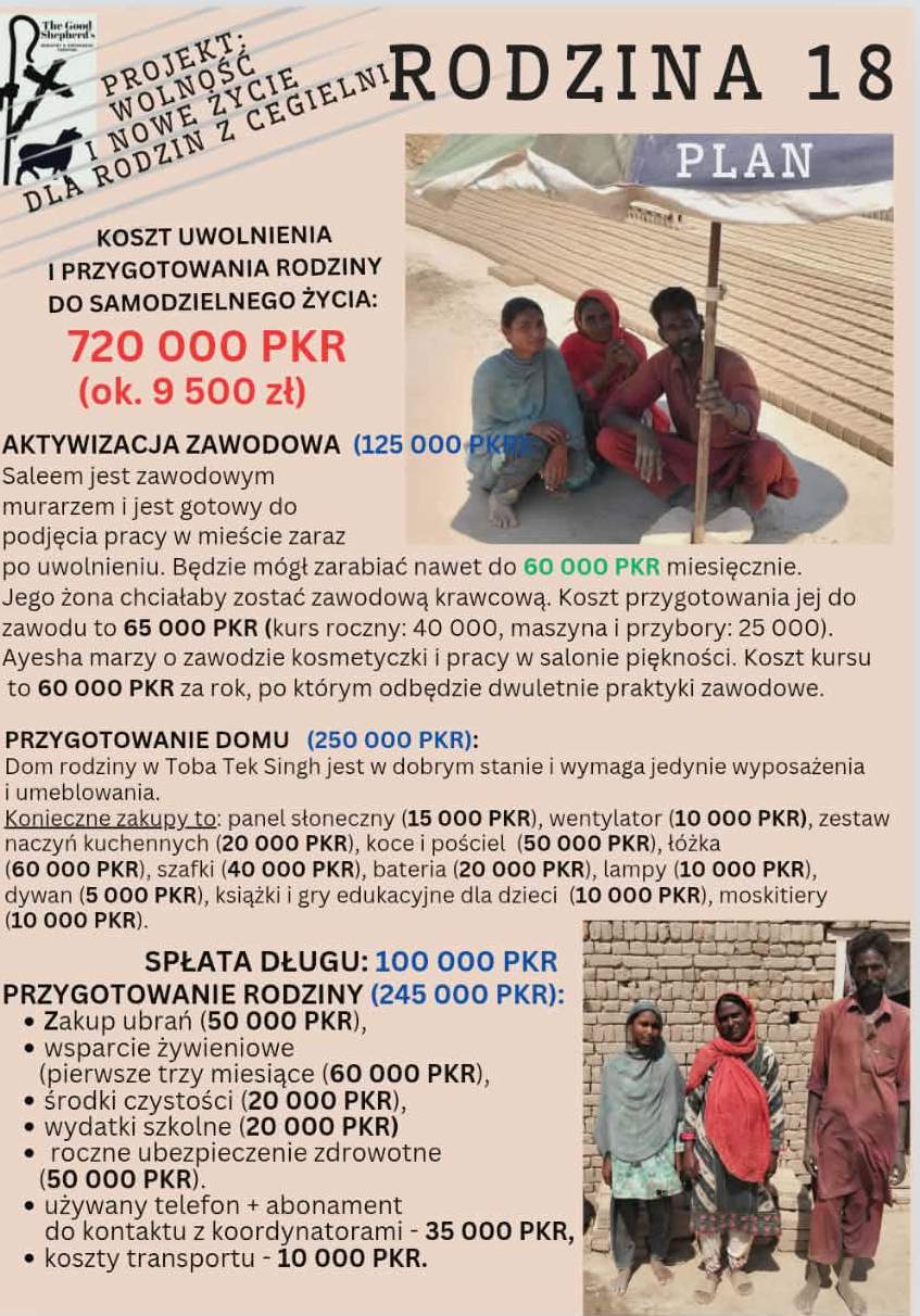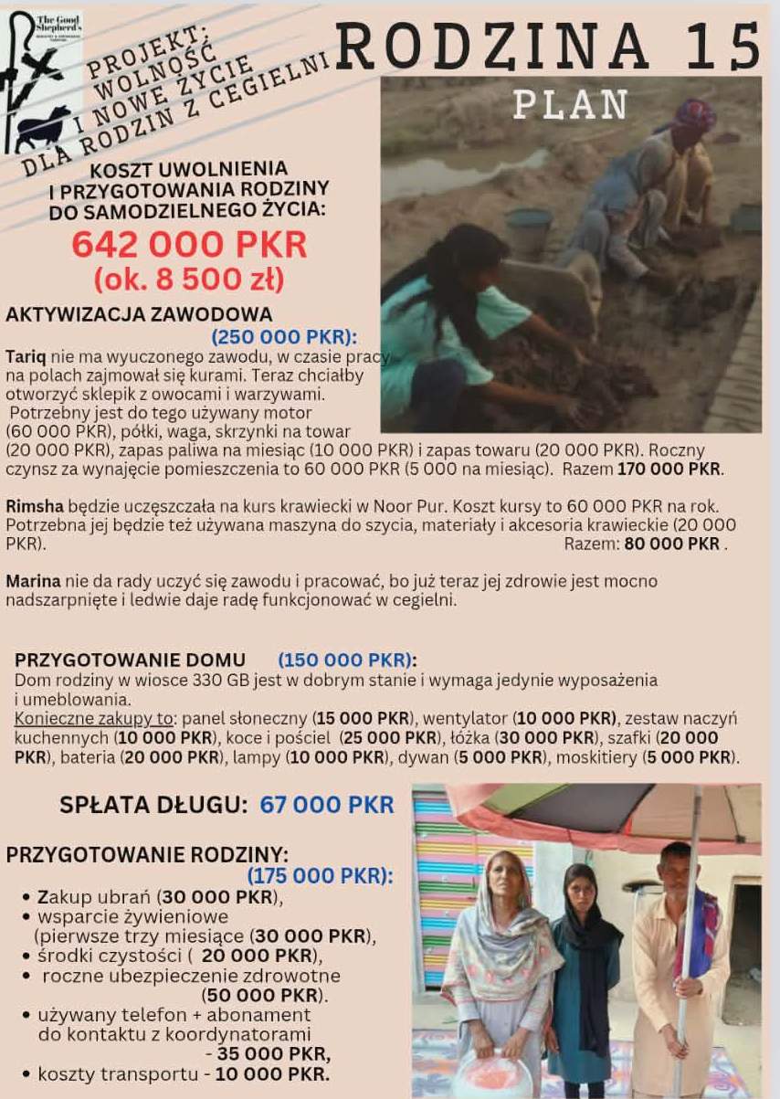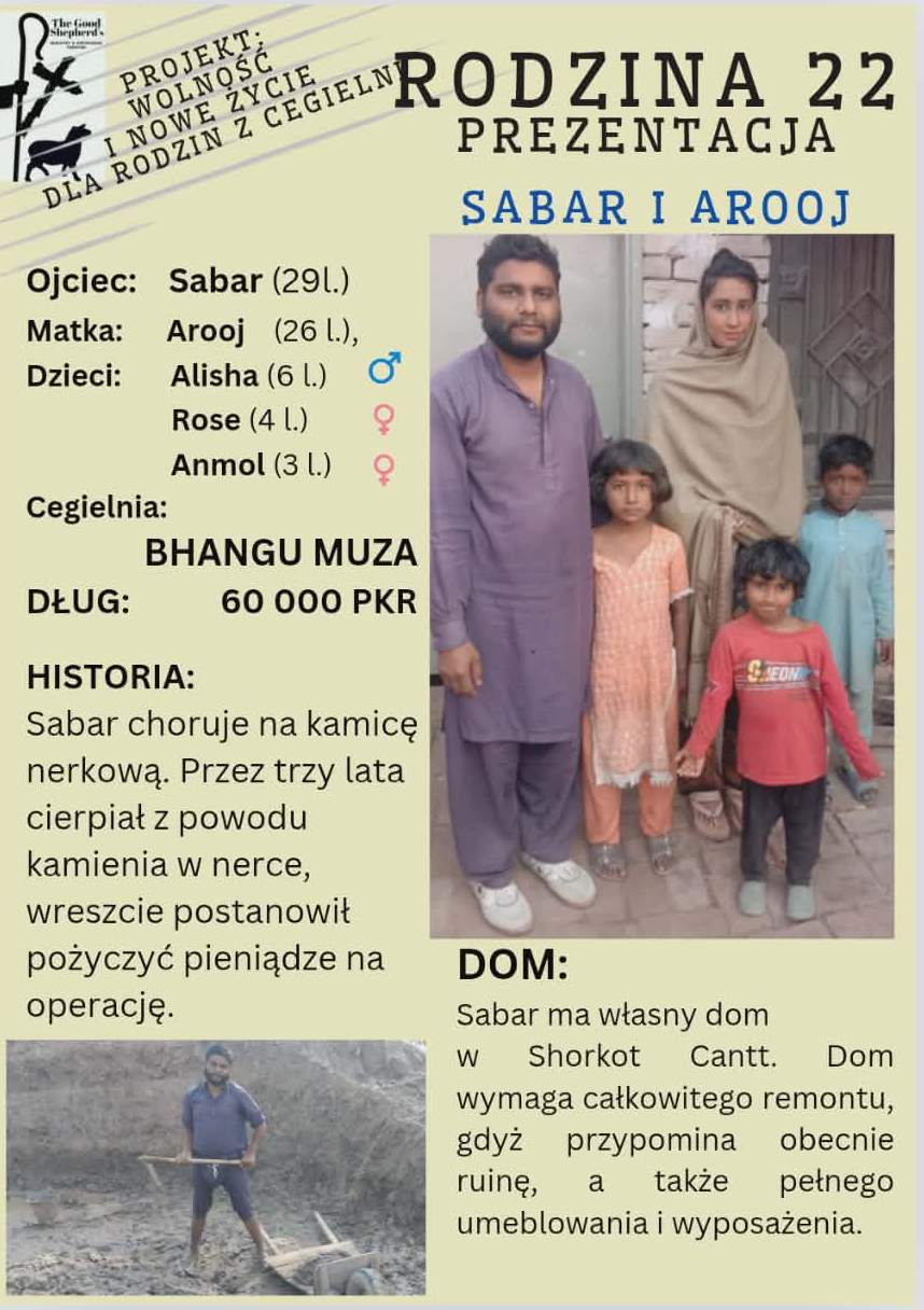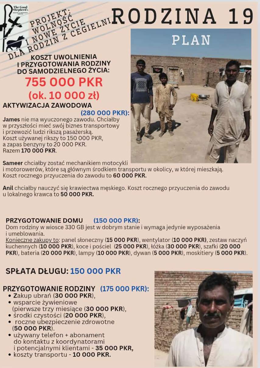 Chcieliśmy przedstawić Państwu aktualizację naszego projektu kompleksowej pomocy dla rodzin z fabryk cegieł. Na dzień dzisiejszy do projektu zakwalifikowaliśmy 12 niewykupionych jeszcze rodzin będących pod opieką Duszpasterstwa Dobrego Pasterza w Pendżabie. Koordynatorami projektu jest chrześcijańskie małżeństwo Sajida i Ashbeel Raifq, którzy podjęli się tego trudnego zadania z pełną świadomością, jak wiele pracy ich czeka przy tym projekcie i przygotowali wszystkie przedstawione w projekcie dane. Na załączonych zdjęciach zostały ujęte wszystkie najważniejsze szczegóły dotyczące każdej z 12. rodzin zakwalifikowanych do programu kompleksowej pomocy obejmującego uwolnienie i przygotowanie rodziny do samodzielnego życia, w tym przede wszystkim:
