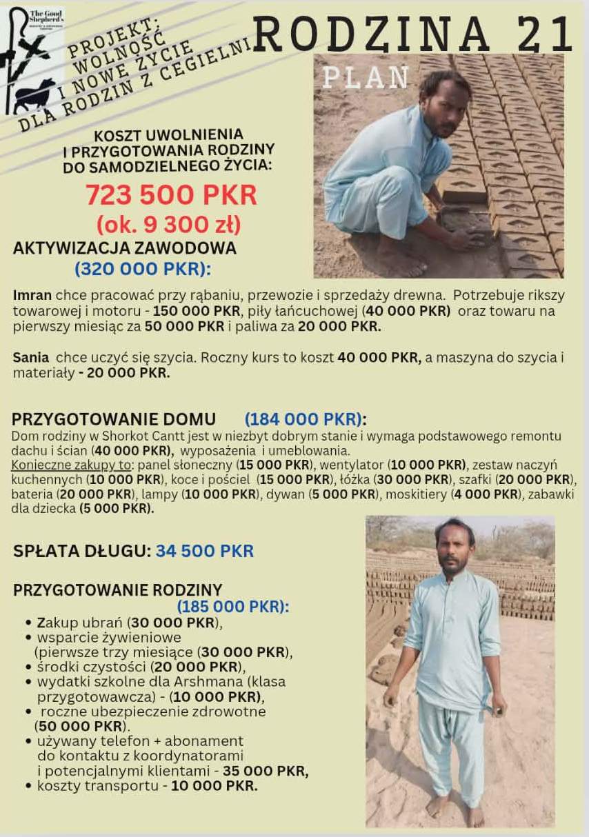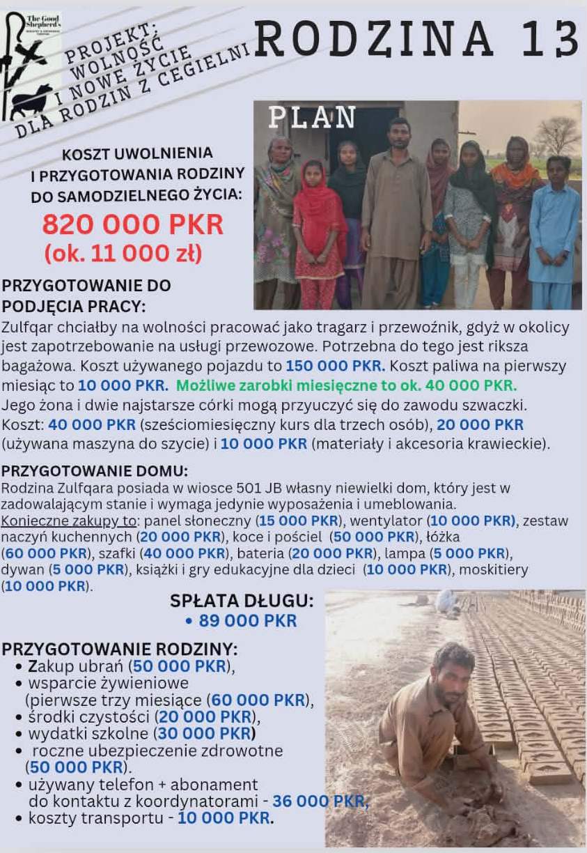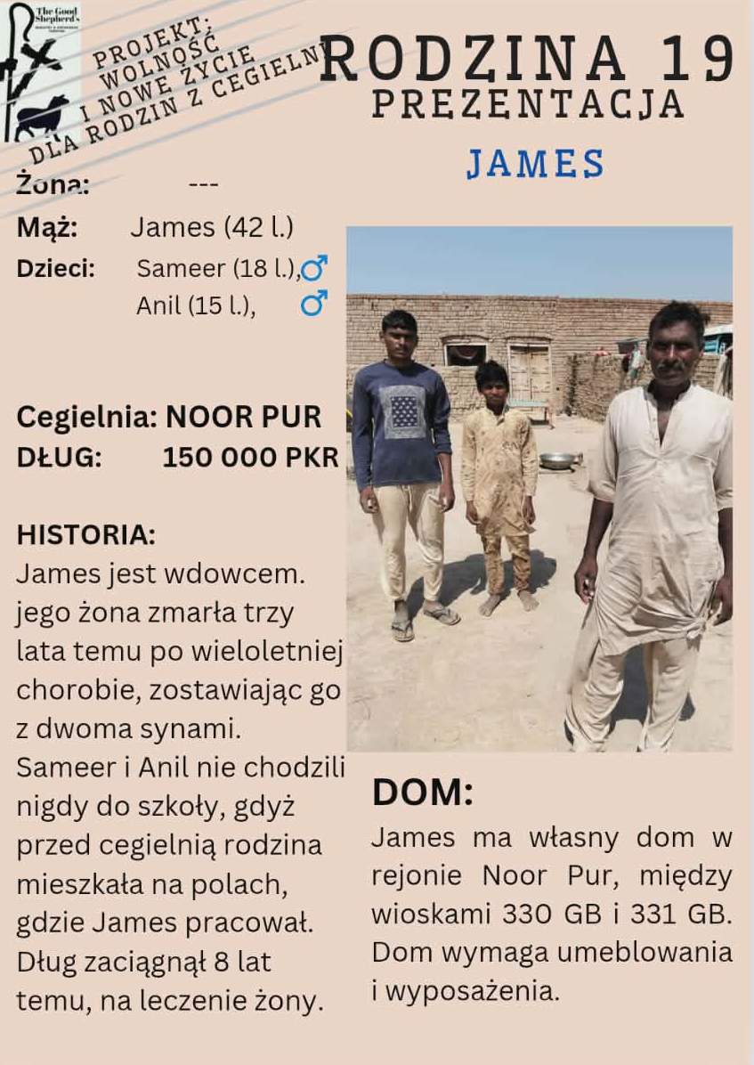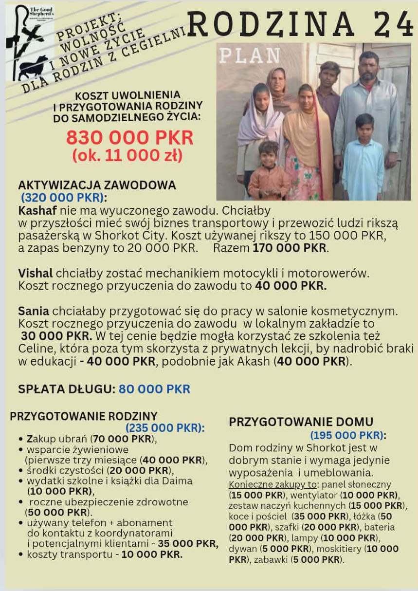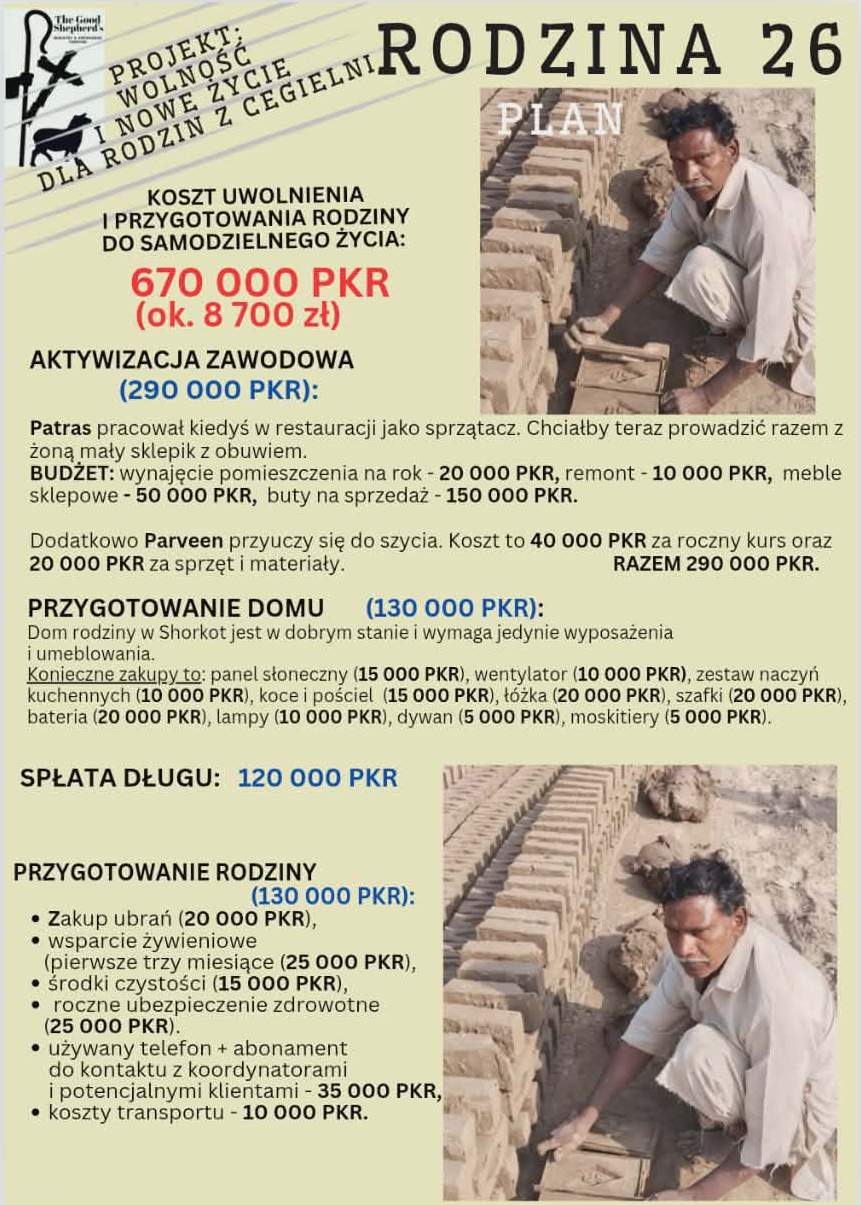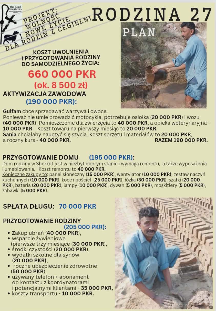 Chcieliśmy przedstawić Państwu aktualizację naszego projektu kompleksowej pomocy dla rodzin z fabryk cegieł. Na dzień dzisiejszy do projektu zakwalifikowaliśmy 12 niewykupionych jeszcze rodzin będących pod opieką Duszpasterstwa Dobrego Pasterza w Pendżabie. Koordynatorami projektu jest chrześcijańskie małżeństwo Sajida i Ashbeel Raifq, którzy podjęli się tego trudnego zadania z pełną świadomością, jak wiele pracy ich czeka przy tym projekcie i przygotowali wszystkie przedstawione w projekcie dane. Na załączonych zdjęciach zostały ujęte wszystkie najważniejsze szczegóły dotyczące każdej z 12. rodzin zakwalifikowanych do programu kompleksowej pomocy obejmującego uwolnienie i przygotowanie rodziny do samodzielnego życia, w tym przede wszystkim: