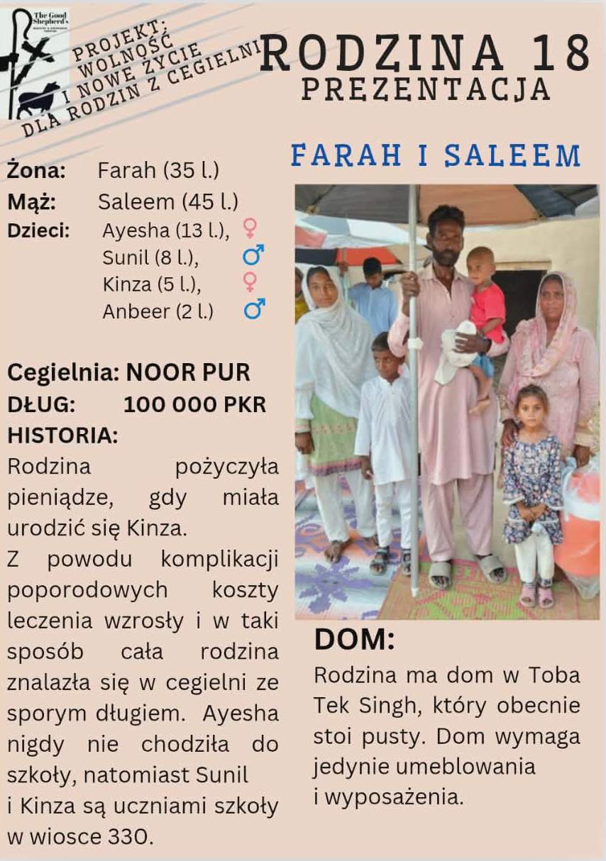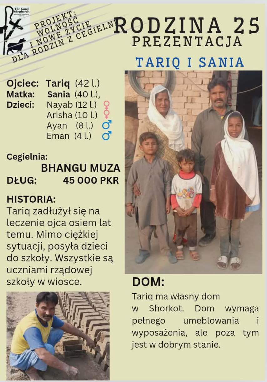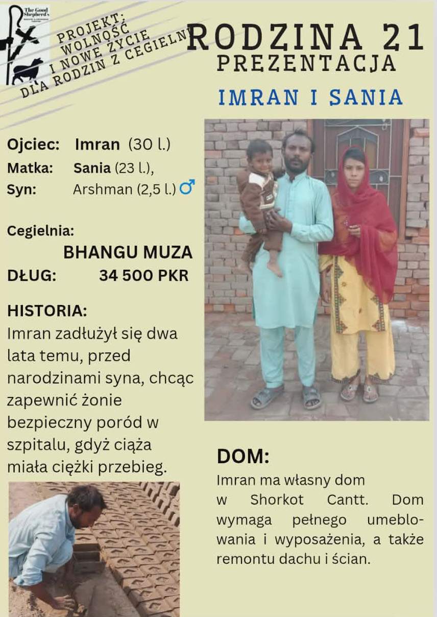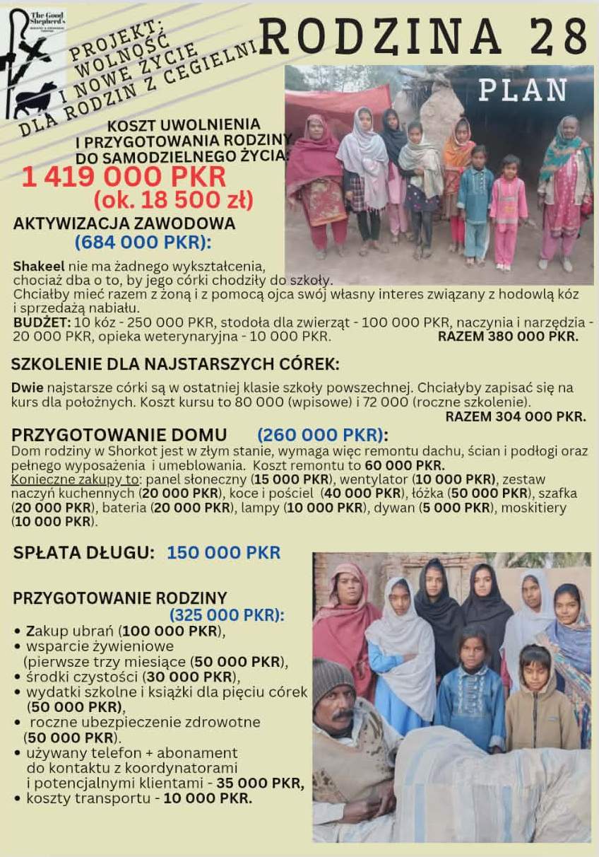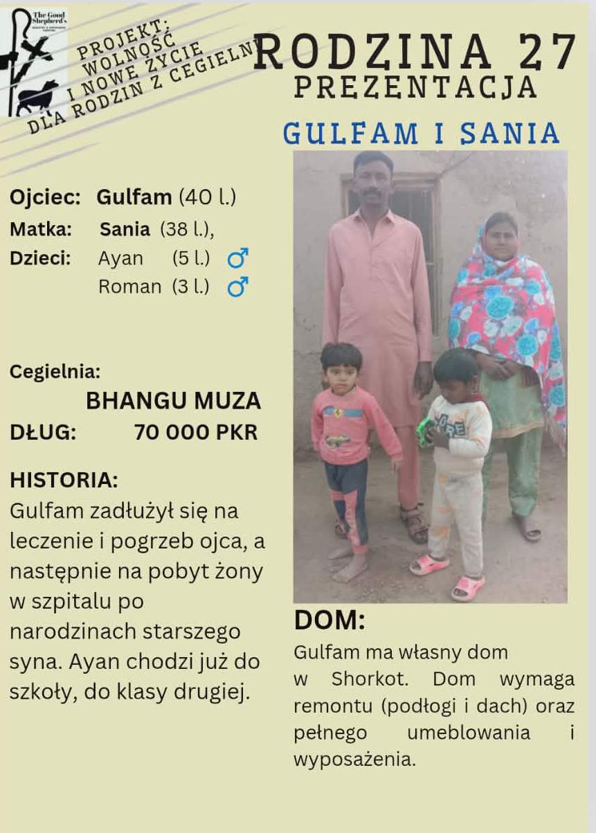 Chcieliśmy przedstawić Państwu aktualizację naszego projektu kompleksowej pomocy dla rodzin z fabryk cegieł. Na dzień dzisiejszy do projektu zakwalifikowaliśmy 12 niewykupionych jeszcze rodzin będących pod opieką Duszpasterstwa Dobrego Pasterza w Pendżabie. Koordynatorami projektu jest chrześcijańskie małżeństwo Sajida i Ashbeel Raifq, którzy podjęli się tego trudnego zadania z pełną świadomością, jak wiele pracy ich czeka przy tym projekcie i przygotowali wszystkie przedstawione w projekcie dane. Na załączonych zdjęciach zostały ujęte wszystkie najważniejsze szczegóły dotyczące każdej z 12. rodzin zakwalifikowanych do programu kompleksowej pomocy obejmującego uwolnienie i przygotowanie rodziny do samodzielnego życia, w tym przede wszystkim: